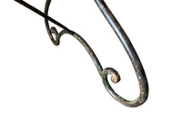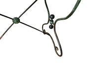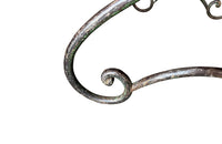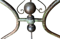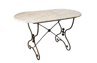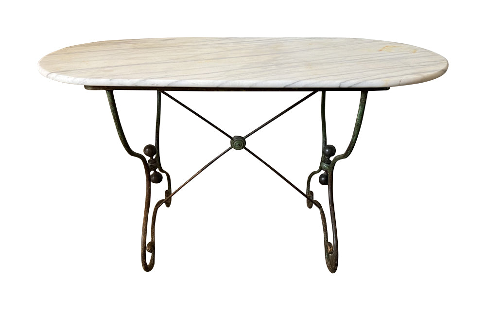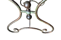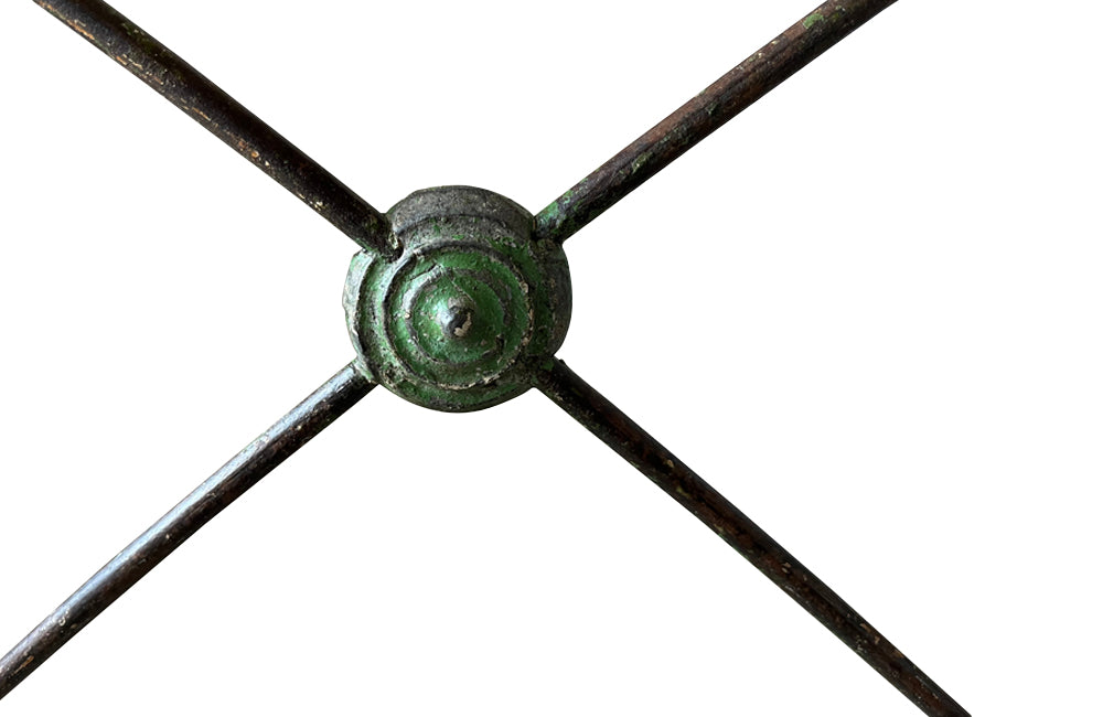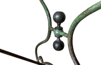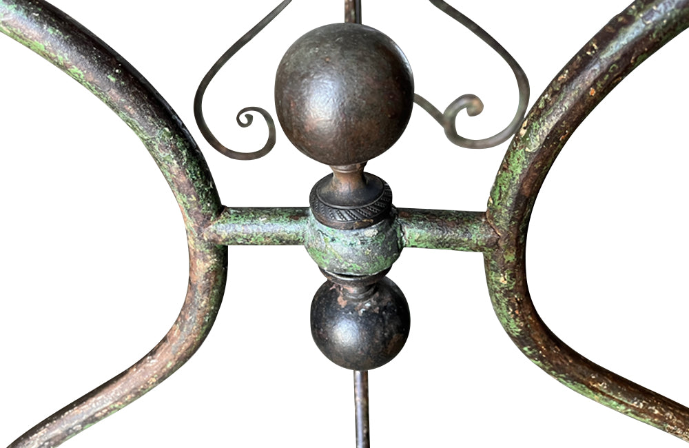 The iron base table with its curved legs with brass ball finials contains the remains of the original paint.