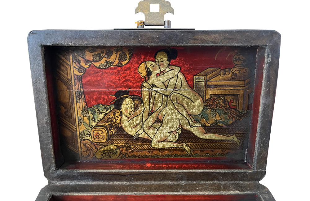 SMALL 20TH CENTURY BOX WITH INTERIOR EROTIC SCENES