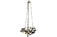 Very pretty brass ecclesiatical chandelier ornamented with bejewelled anemone flowers and six candle holders.