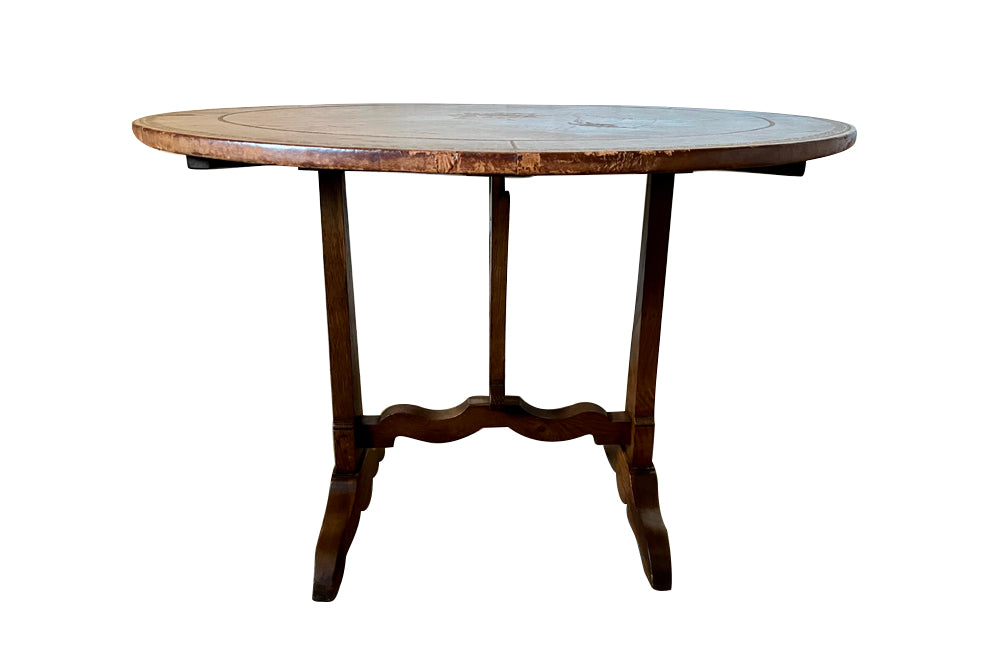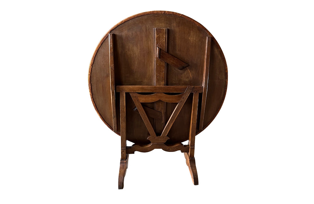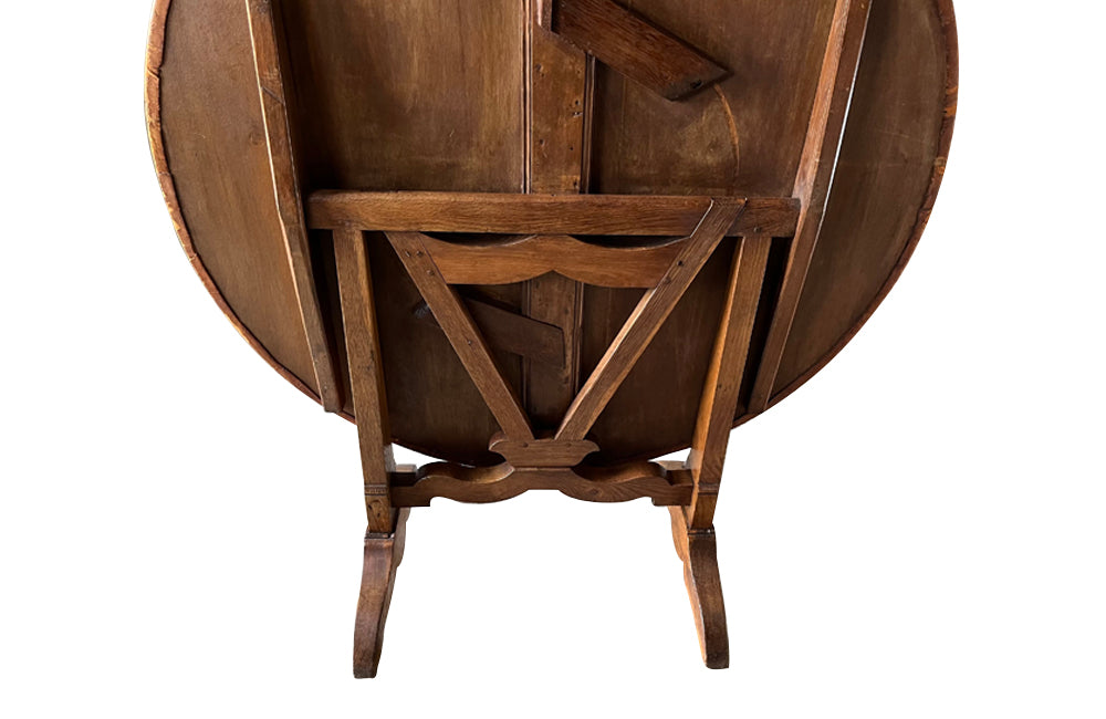 With trestle supports and a tilt top function, these tables allowed for easy storage in the cellar and movement outside for wine-tasting.
