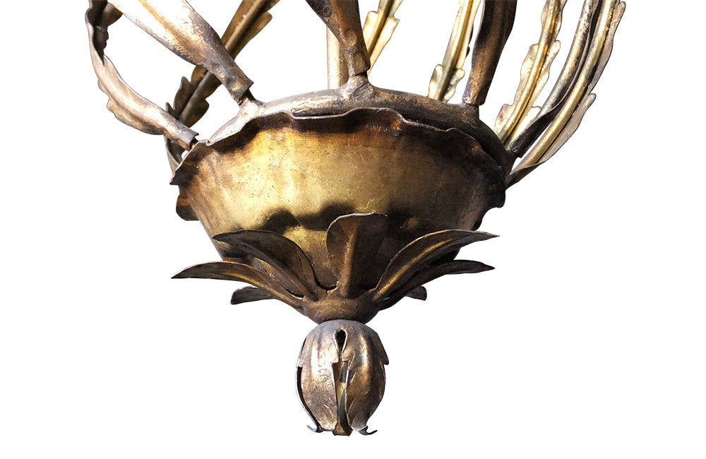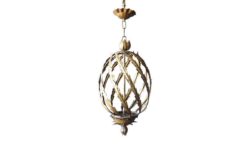 Vintage, giltmetal, chandelier / lantern of unusual design. Spain c. 1970 [Currently unwired but can be arranged upon request]