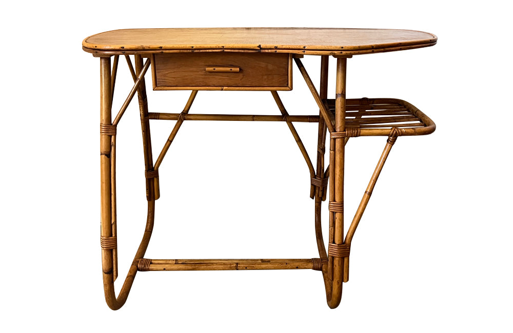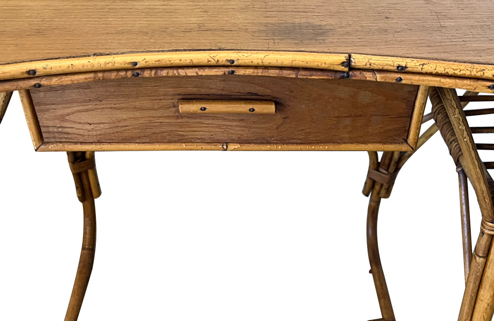Mid 20th century freeform cane and rattan bureau attributed to the French designer Louis Sognot.