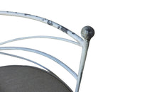 Unusual, pair of vintage French iron garden/conservatory chairs. With linen seat cushions.