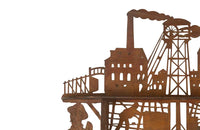 Rare, set of finely detailed fretwork shelves. Intricately carved with coal mining related scenes. Circa 1900