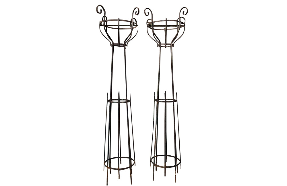 TALL PAIR OF FRENCH IRON GARDEN PLANT SUPPORTS