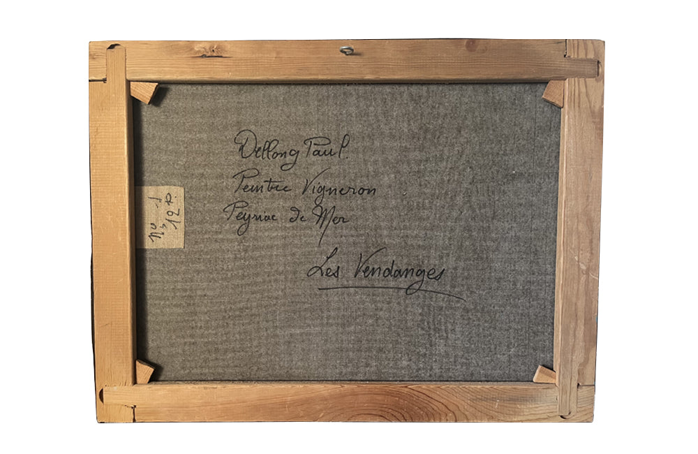 Inscribed to the rear : Dellong Paul, Peintre Vigneron, Peyriac de Mer. 'Les Vendanges'.