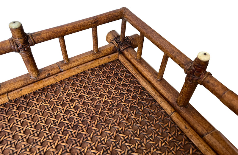 FAUX BAMBOO AND CANE SIDE TABLE BY E.MURIO