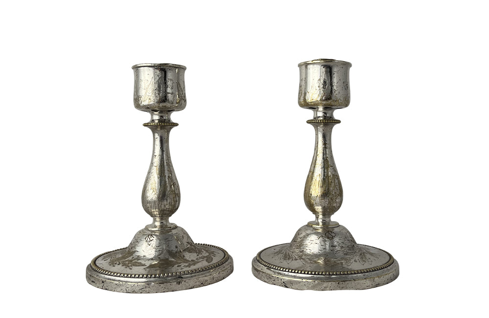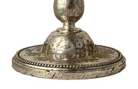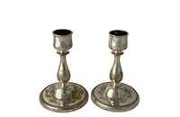 These heavily weighted candle holders are beautifully decorated with engraved bulrushes around the stem and to the top, floral and foliate motifs.