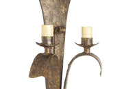 Pair of 20th Century very stylish Spanish gilt iron wall appliques.